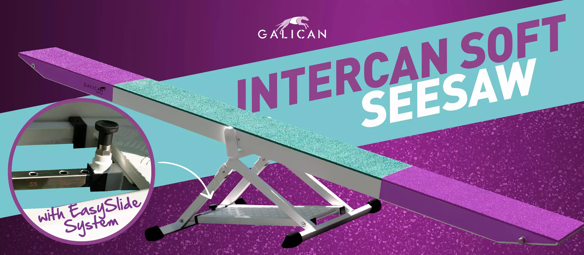 The Intercan Regular seesaw shares the same stable base as the Soft model. Here, we use only the popular Galican rubber surface, providing optimal grip for safe, reliable use