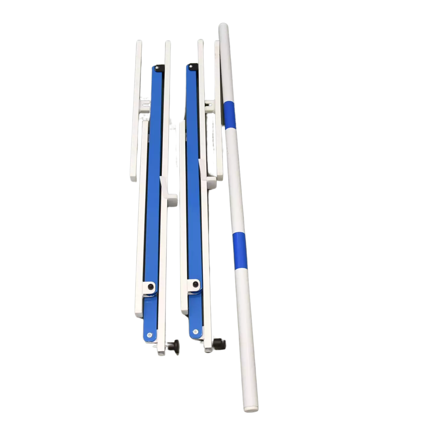 ew Foldable Jump, designed for agility training with maximum functionality and durability, ideal for agility training on the go. Made of high-quality lacquered aluminum, it ensures durability and lightness. Its PVC poles feature two vinyl stripes for enhanced visibility, while the nylon supports provide stability on any terrain. Thanks to its adjustable height system, in 5 cm increments from 10 to 60 cm, it easily adapts to different training levels. Perfect for outdoor use and easy to assemble, it is the ideal option to enhance agility performance.