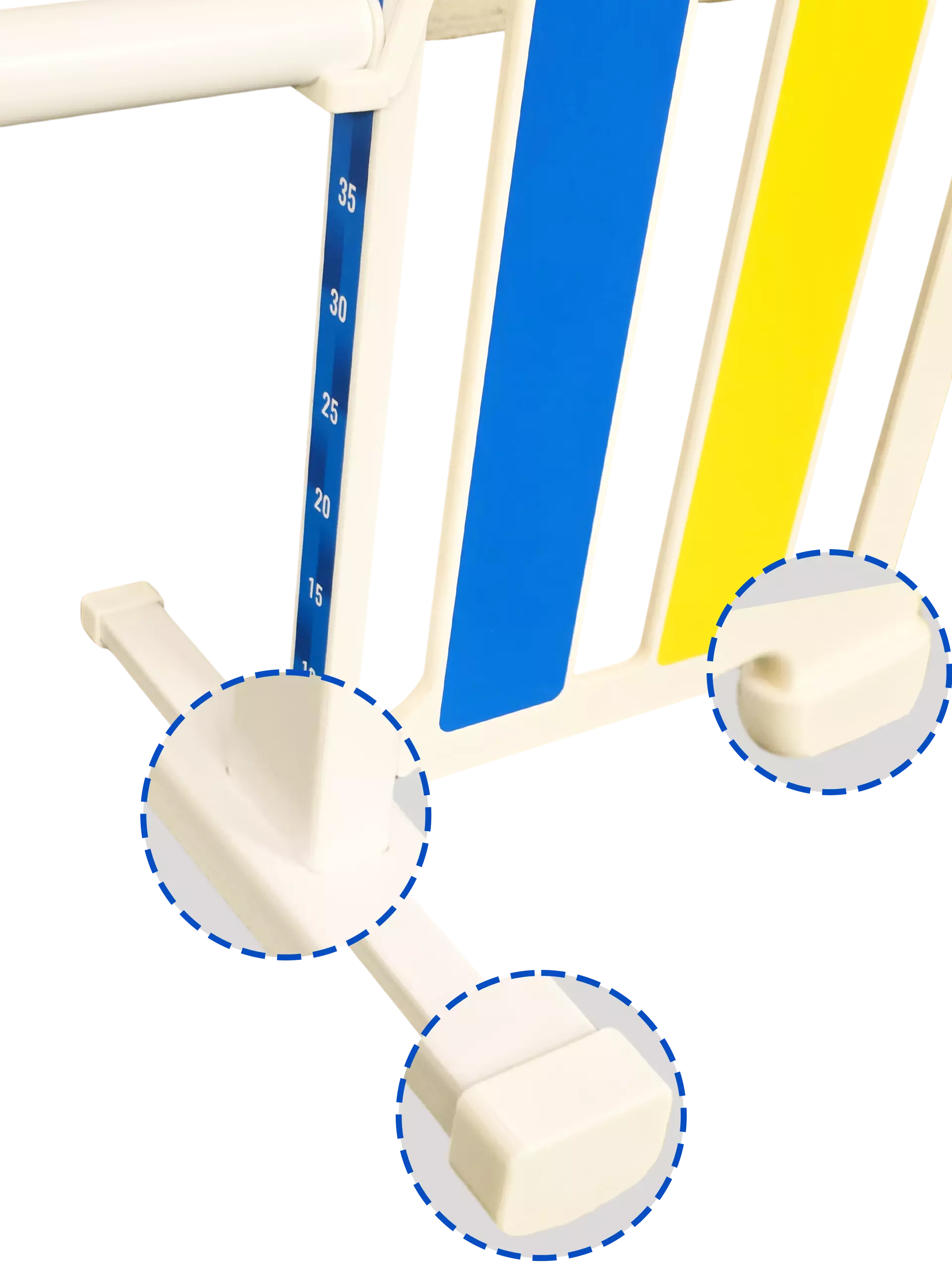 Targeted Repair: In the event of a critical impact or extreme wear, the user can replace only the affected part (whether it be an HDPVC panel, an aluminum upright, or a stabilizing base) without the need to purchase a complete jump unit.