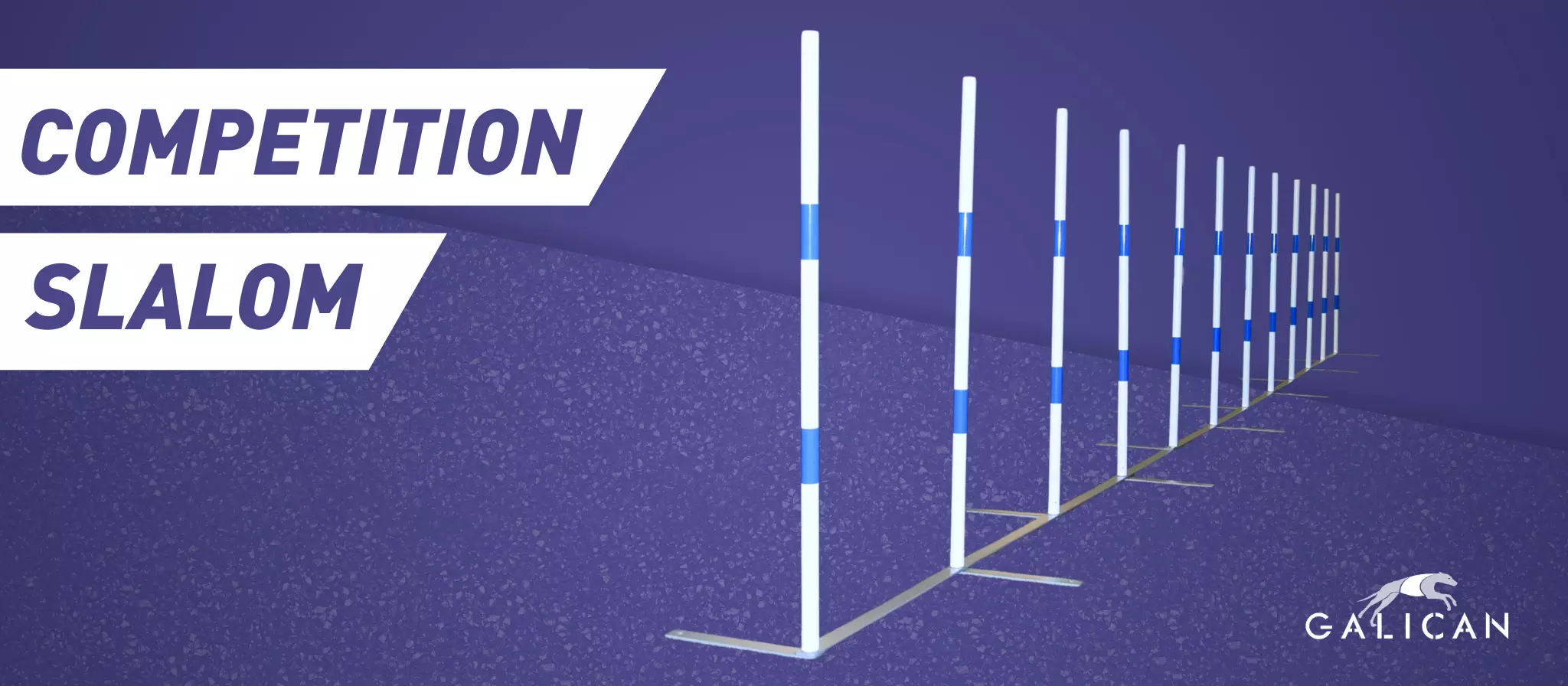 With the new Galican FCI Competition Slalom, a new slalom is now on the market that is even more robust, slip-resistant, and safe. Its construction from powder-coated steel and durable PVC poles ensures stability no matter how intensely it is used. A clever connection system prevents the base from shifting, while setup remains quick and easy.